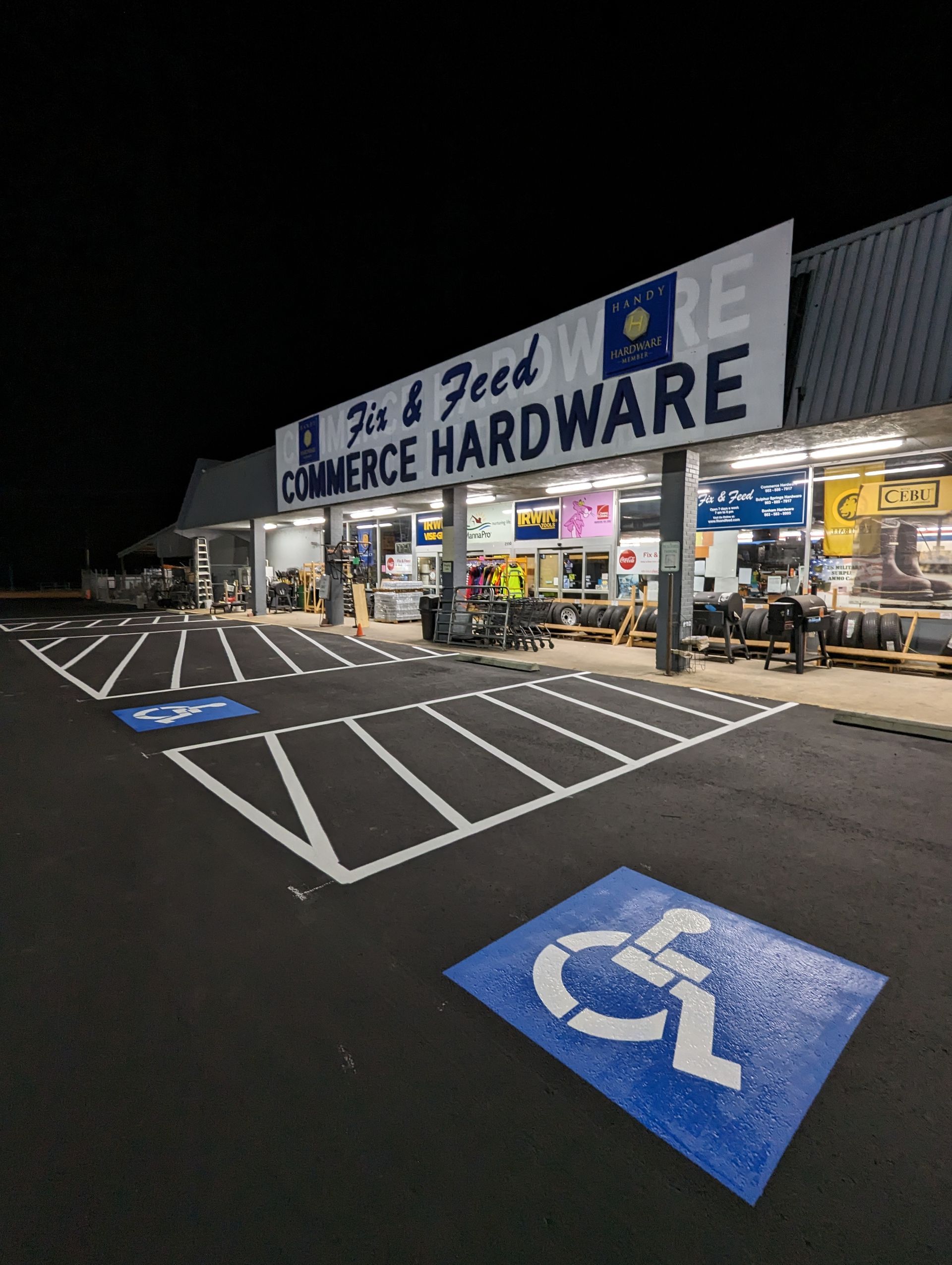 We can help give you business a fresh look. Get touch ups or New layouts. We take care of parking stalls, ADA stalls, curbs, firelanes, lettering, arrows, etc.